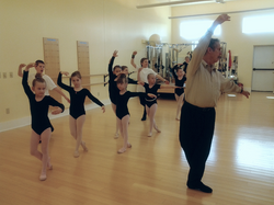 ![]() Renata Hopkins 3 & Sophie LaFave 2 in a Pre-Ballet class. | ![]() Leland Preval and 2nd month of Beginner Ballet students. | ![]() Leland Prival and Beginning Ballet students take a final bow at the end of their class. | ![]() Leland Prival strengthening and correcting posture of student, 11 year old Benjamin Norton. |